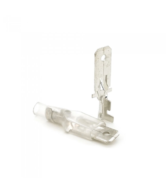 Клема F2 (тато), 6.3мм, провід 0.5-2.5 - призначена для електромонтажу. Взаємодіє з клемою типу "мама" вставляються в колодку або обтискаються на дроті. Швидко, надійно та без проблем.