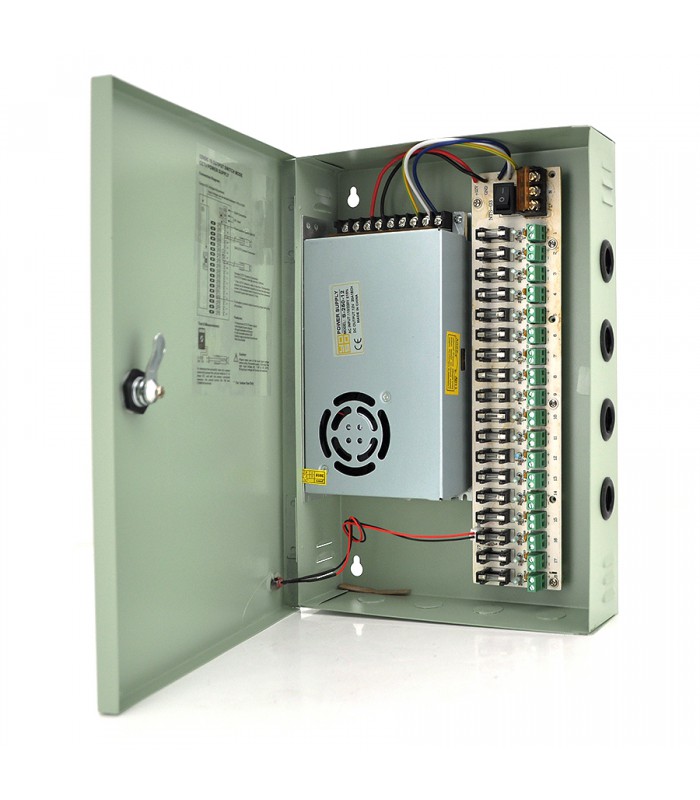 Імпульсний блок живлення 12V-20A / 18CH в боксі з замком перфорований, 18-ти канальний