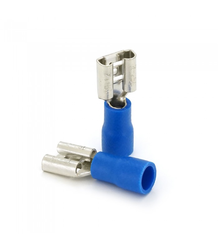 Роз'єм вібростійкий плоский FDD2-250, провід 1.5-2.5, ізольований, максимальний струм 15А, під обтискання, латунь, 100шт в упако Новинка