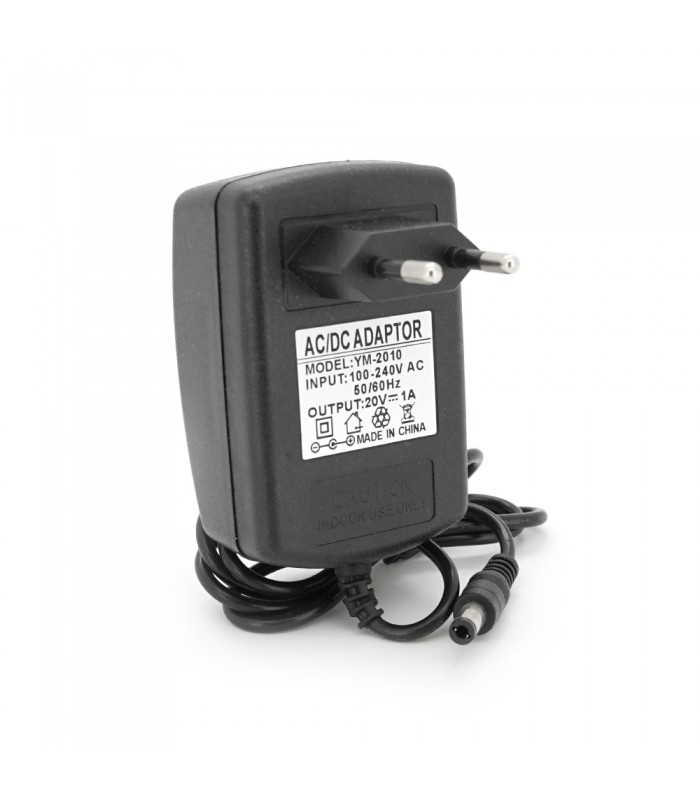 Цей адаптер призначений для забезпечення електроживленням пристроїв, що працюють з напругою 20 Вольт та споживають до 1 Ампера потужності, що становить 20 Ватт. Відповідний штекер 5.5/2.5 мм сумісний з більшістю пристроїв, які використовують цей тип гнізда. Довжина кабелю становить 0.9 метра, що зазвичай є достатньою для більшості випадків використання.