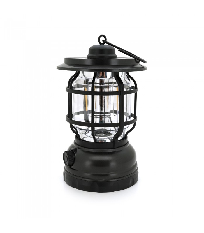 Лампа-ліхтар SW-1933T, 3LED, диммер, корпус-пластик, ударостійкий, USB кабель + Solar, акум 18650, Black, BOX