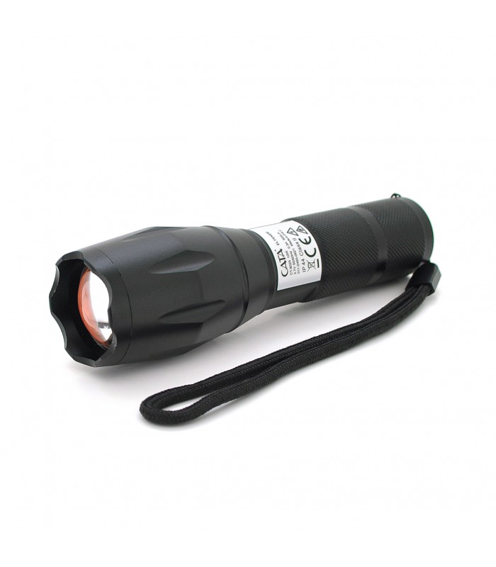 Ліхтар ручний CATA CT-8025, 1LED Cree XM-L T6, 10W, 5 режимів, ZOOM, 18650/3400 вбудований, Black, IP44, microUSB, 132х33х27мм,