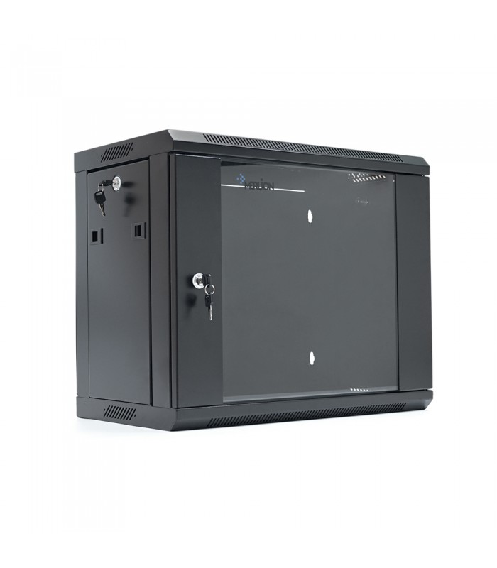 Шафа Merlion 9U, 600*350*500 (Ш*Г*В) мм загартоване скло, чорна, сталь 1,2мм, із замком (у розібраному вигляді!!!), Black