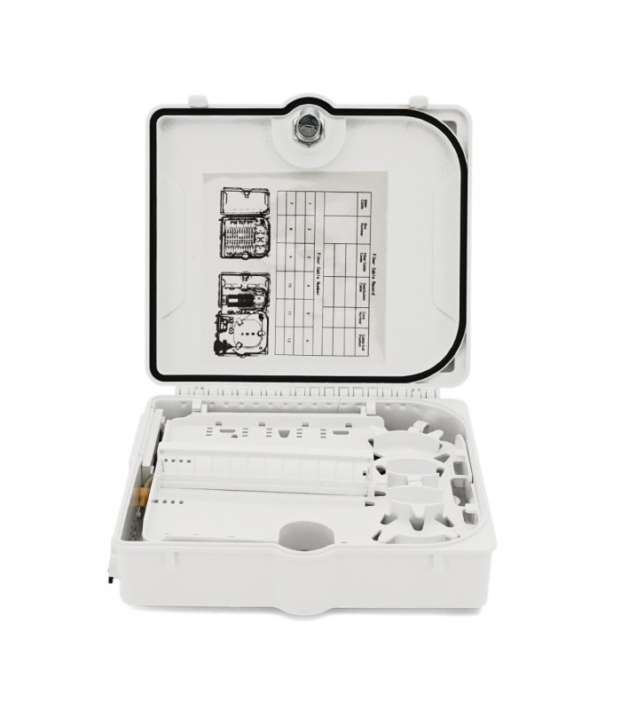 PON-бокс Merlion ML-OP-S222-SC 12-канальний призначений для захисту та організації оптичного кабелю всередині приміщень та на відкритому повітрі. Виготовлений з матеріалу ABS із захистом від вологи та пилу (IP65) та оснащений SC Simplex адаптером.