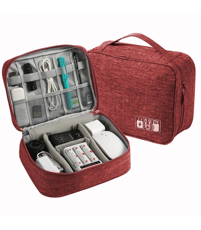 Органайзер для зарядок, проводів та кабелів, тканина оксфорд, 24х9х18см, Burgundy Новинка