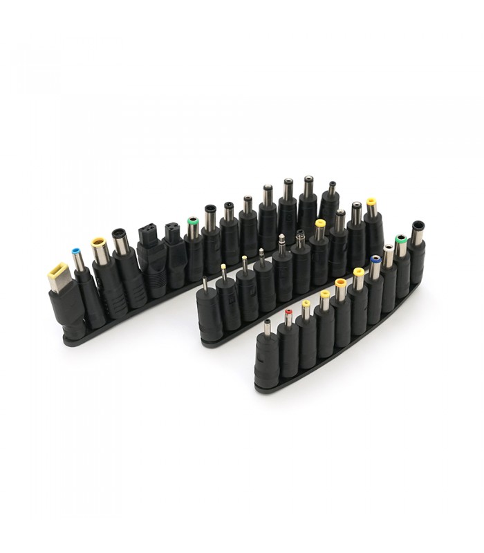 Набір перехідників 34 в 1 є комплектом з 34 різних перехідників для підключення пристроїв з різними роз'ємами. Включає роз'єми 7,9х5,5; 7,4 х5, 0; 6,5 х4, 4; 6,3 х3, 0; 5,5 х3, 0; 5,5 х2, 5; 5,5 х2, 1; 5,5 х1, 7; 4,8 х1, 7; 3PIN DELL.