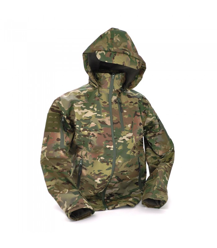 Опис: Зручна та функціональна куртка-плащ софтшелл у розмірі XXL з камуфляжним дизайном Multicam.