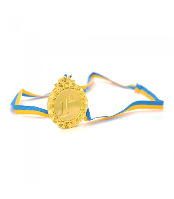 Відсвяткуйте досягнення вашого переможця за допомогою цієї "золотої медалі" діаметром 6,5 см. Ця нагородна медаль стане ідеальним символом перемоги на будь-якому змаганні, будь то спортивний захід, шкільна олімпіада чи корпоративний конкурс.