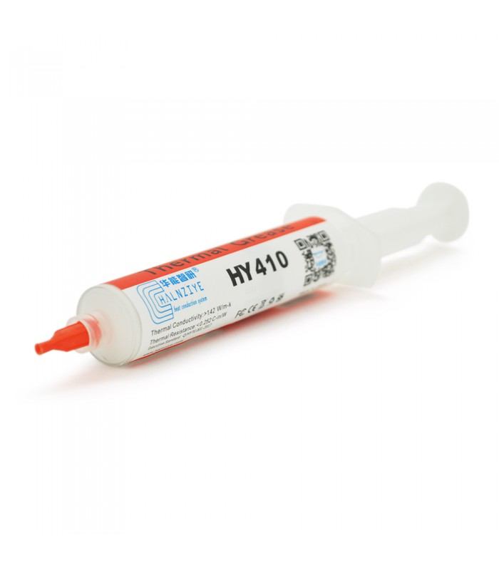 Паста термопровідна HY-410 30g, шприц, White, 1,42W/m-K, 0.262°C-in²/W, -30°≈280°, В'язкість -1K cPs, OEM Q5