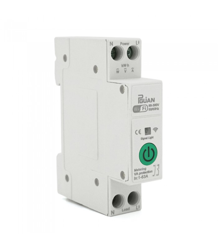 WI-FI вимикач-реле на DIN рейку 63А з вимірюванням струму та напруги, захистом від перенапруги