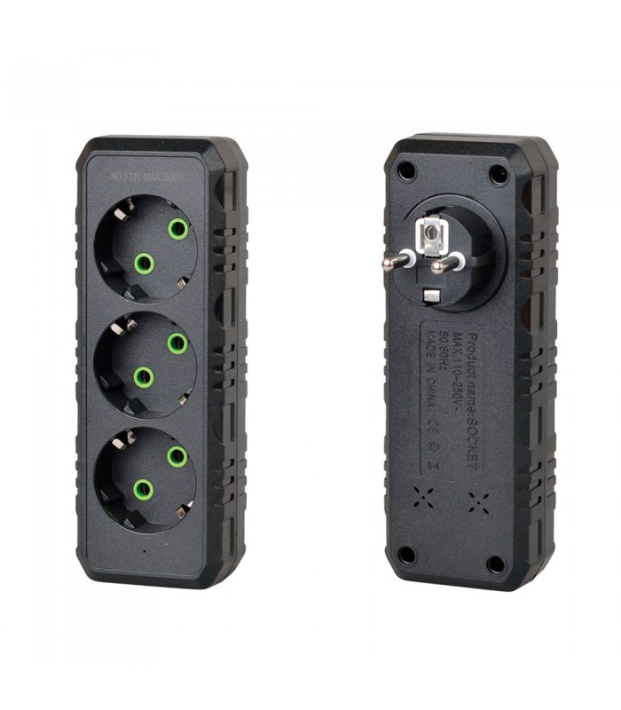 Розетка трійник із заземленням F101-Black, 3 розетки, 2500W, 10A, 110-250V~Max, Blister Новинка