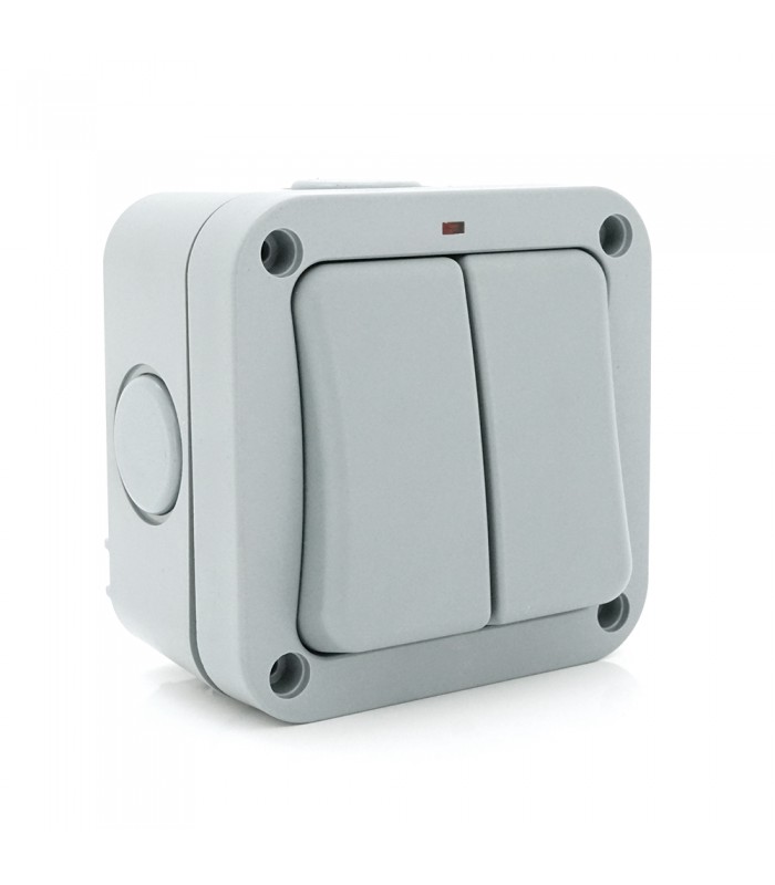 Вимикач подвійний зовнішнього монтажу, водонепроникний, IP66, AC: 110-250V, 10A, White