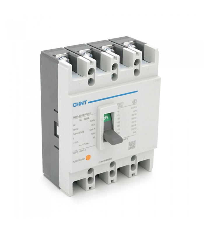 Автоматичний вимикач змінного струму CHINT NM1-125S/4300-125А 4P, 380 В. 125A. 8КА/400В 10КА/800В. 155*120*68mm