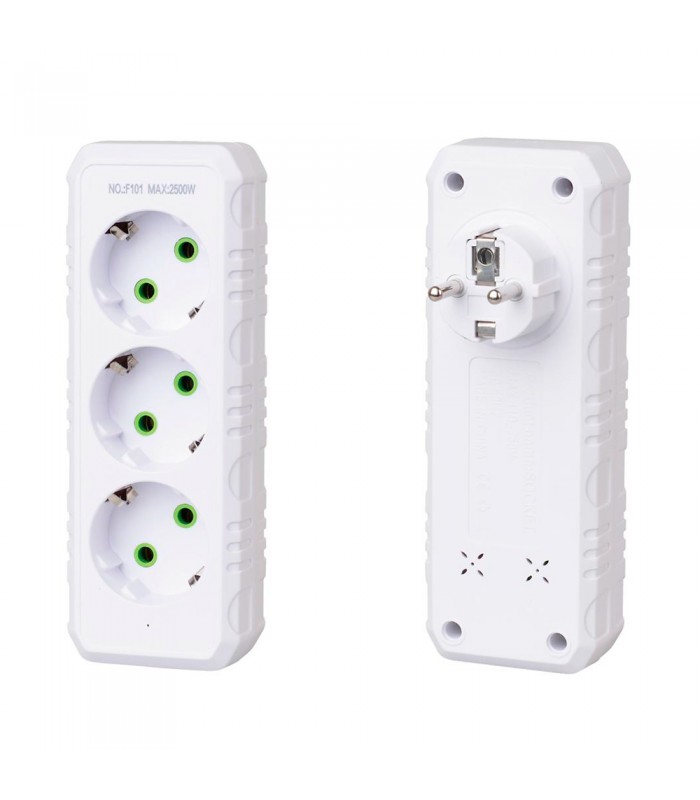 Розетка трійник із заземленням F101-White, 3 розетки, 2500W, 10A, 110-250V~Max, Blister Новинка