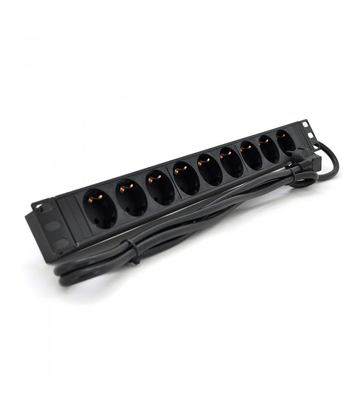 Подовжувач на 9 розеток, 220В ,німецький тип, 1U 19", алюмінієвий корпус, чорний довжина кабеля 1,8м, Q25