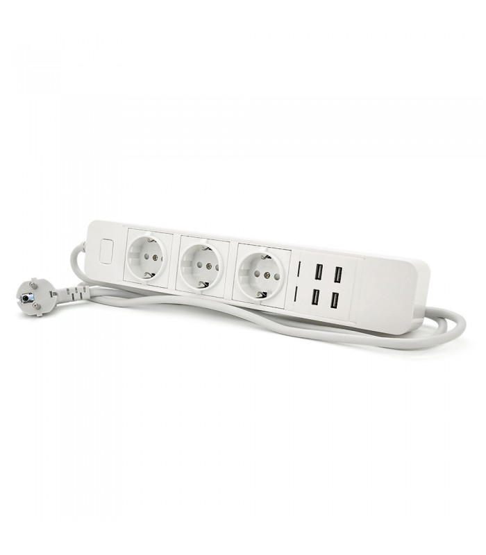 Мережевий фільтр з керуванням через WiFi, 3 Розетки + 4 USB, 2 м, перетин 3х0,75мм, Black / White, Box