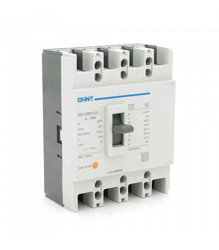 Автоматичний вимикач змінного струму CHINT NM1-125S/4300-100А 4P, 380 В. 100A. 8КА/400В 10КА/800В. 155*120*68mm