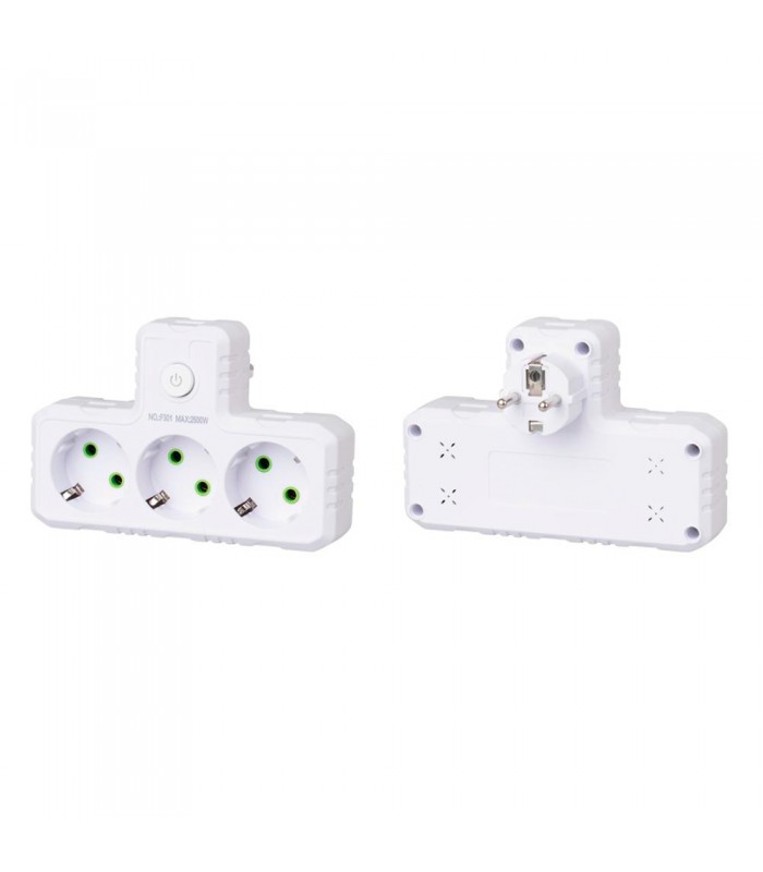 Розетка трійник Т-подібний із заземленням F301-White, 3 розетки, 2500W, 10A, 110-250V~Max, Blister Новинка
