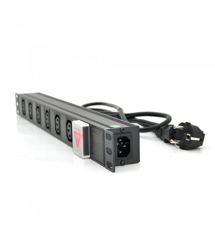 Подовжувач на 6 розеток C13 з вимикачем, 220В, німецький тип, 1U 19 ", з адаптером живлення C13, алюмінієвий корпус, чорний довж
