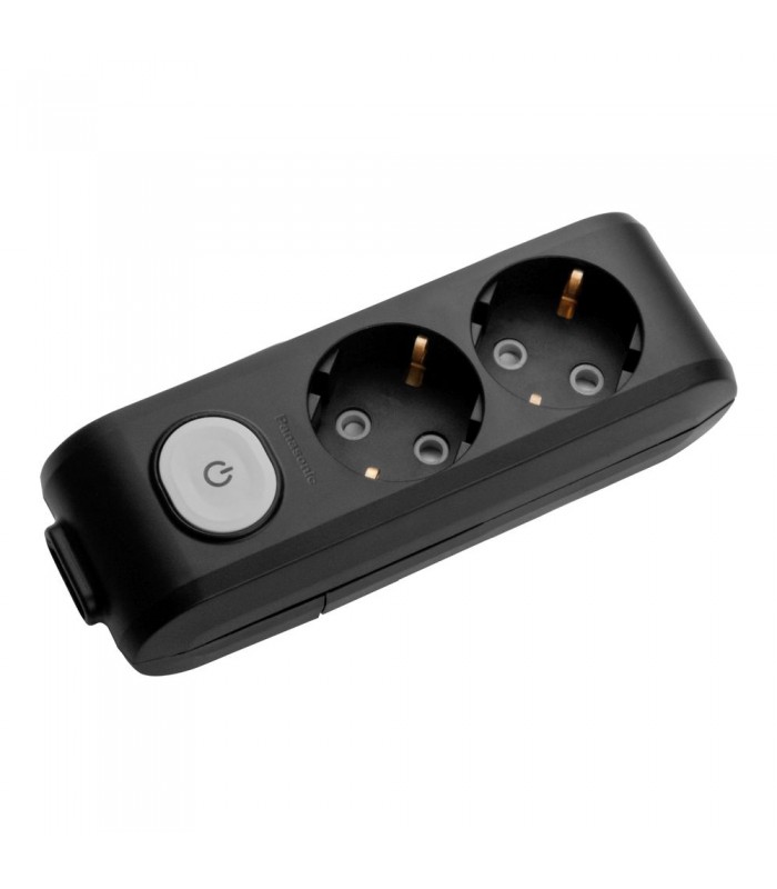 Колодка Panasonic X-tendia із заземленням 2 гнізда, з захистними шторками,з вимикачем чорна