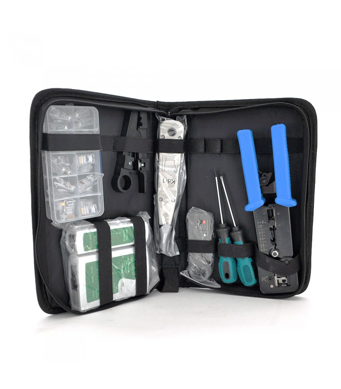 Набір монтажника 9 в 1 Merlion (A063), EZ-RJ45, KD-1, G501, HT332, тестер, конектори, викрутки, box 2*5, сумка