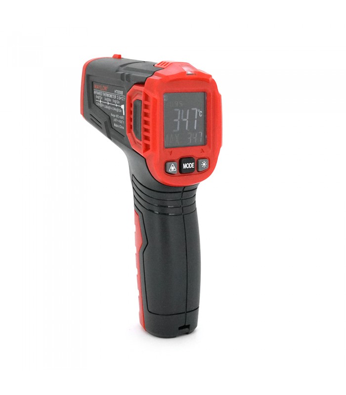 Інфрачервоний термометр Mayilon HT-650B – це сучасний портативний прилад для безконтактного вимірювання температури поверхонь. Пристрій призначений для швидкого і точного контролю температурних показників у різних умовах, де неможливий або небажаний контакт з об'єктом вимірювання.