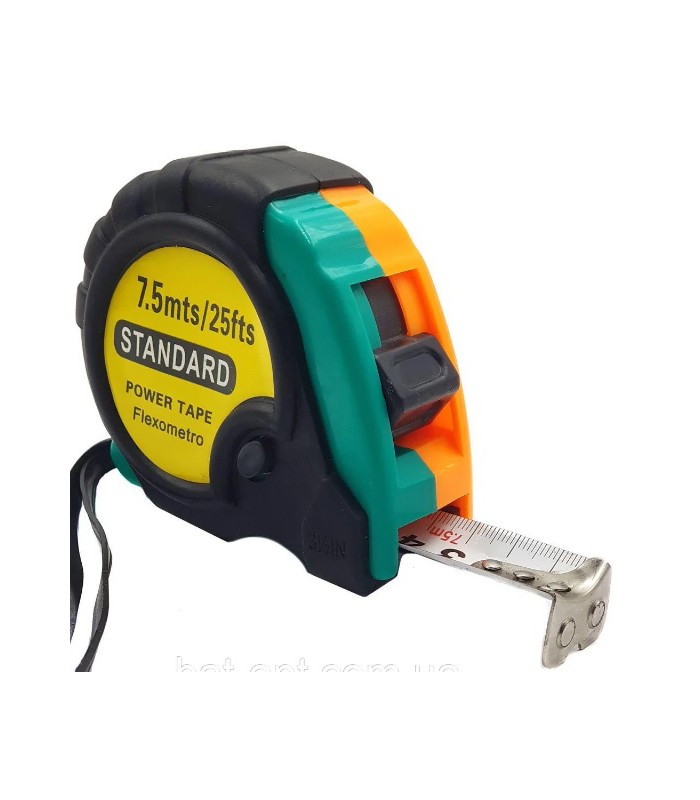 Рулетка гумова STANDART, 7,5 м - це ідеальний вибір для професіоналів і домашніх майстрів, які цінують якість, надійність і зручність в роботі.