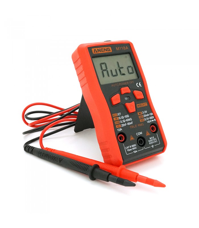 ANENG M118A є ультракомпактним мультифункціональним мультиметром, розробленим для точного вимірювання AC/DC напруги і струму, опору, ємності, перевірки діодів, цілісності ланцюгів, неінвазивного виявлення напруги (NCV) та отримання справжнього середньоквадратичного значення (TrueRMS).