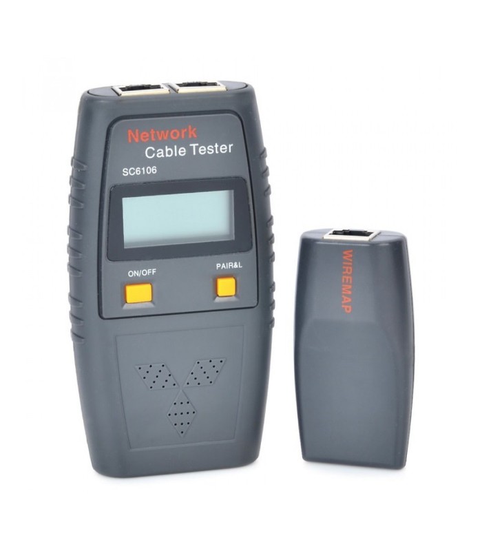 Кабельний тестер Merlion SC-6106 – сучасний тестер під кабель кручена пара (UTP, FTP) з можливістю пошуку обриву. Можливості тестера дозволяють зробити якісну перевірку кручений пари довжиною прокладки до 300 метрів. З'єднання здійснюється через інтерфейс RJ-45. Використовуючи перехідники під RJ-11 та BNC пристрій успішно переходить на тестування коаксіального та телефонного кабелю. Довжина коаксіалу допустима до 500 метрів, а телефонного кабелю до 300. Телефонні кабелі до перевірки допускаються як на 2, так і на 4 жили.