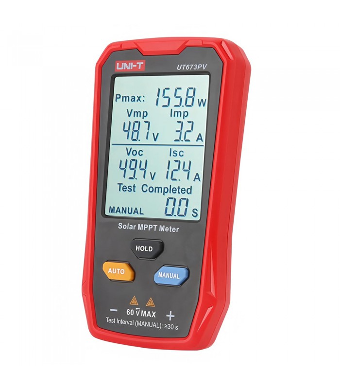 Тестер параметрів сонячних панелей UNI-T UT673PV – це професійний вимірювальний прилад, розроблений спеціально для тестування фотоелектричних модулів у галузі сонячної енергетики. Основне завдання - визначення точки максимальної потужності (MPPT), що є ключовим параметром для аналізу ефективності сонячної панелі.