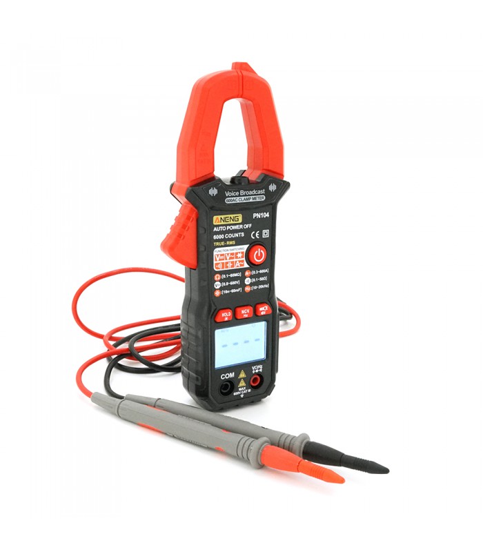 Токові кліщі ANENG PN104 Вимірювання: V (AC/DC), A (AC/DC), Ω, C, Hz (NCV, True RMS). Функції: Data Hold, продзвонювання, тест д
