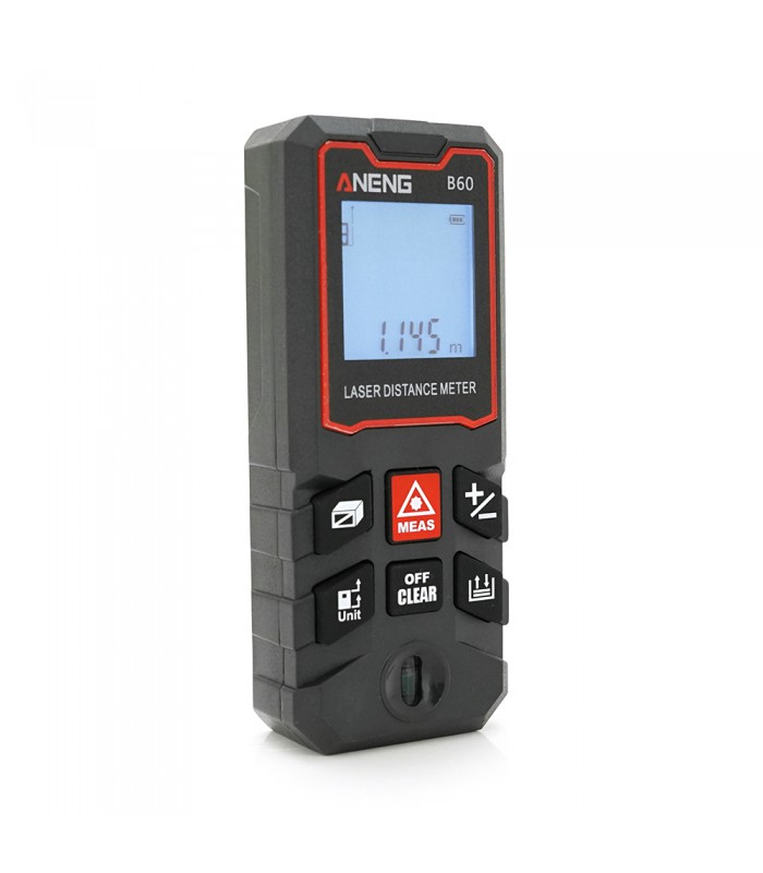 Лазерний далекомір ANENG AN-B60 оснащений цифровим РК-дисплеєм з підсвічуванням для зручності читання даних за будь-яких умов освітлення. Він підтримує функції швидкого вимірювання відстані, площі, об'єму та обчислення за теоремою Піфагора. Пристрій також дозволяє зберігати до 30 наборів даних.