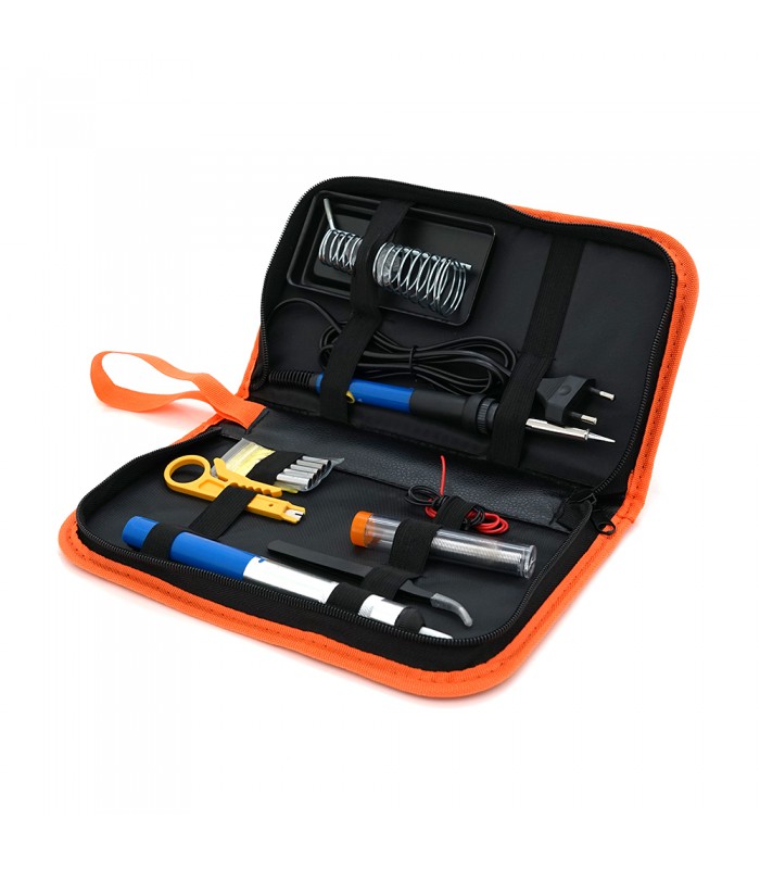 Цей набір включає електричний паяльник з регулятором температури JIANG JN-806, призначений для паяння різних електронних компонентів.