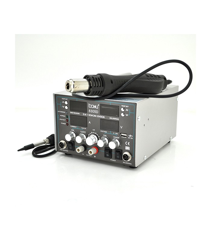 Паяльна станція BAKKU BA-8305D цифрова індикація, фен, паяльник, БЖ DC 0-30В, 5A (340*278*208) 5,1 кг