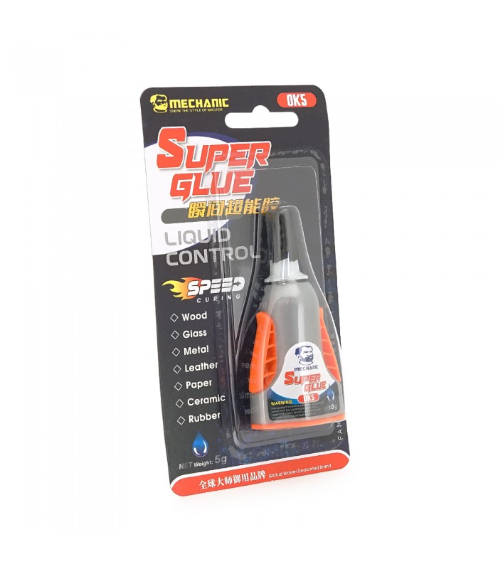 Клей MECHANIC OK5, ціаноакрилатний, однокомпонентний, термостійкий, швидкої полімеризації клей з низькою в'язкістю, 5g, блістер Новинка