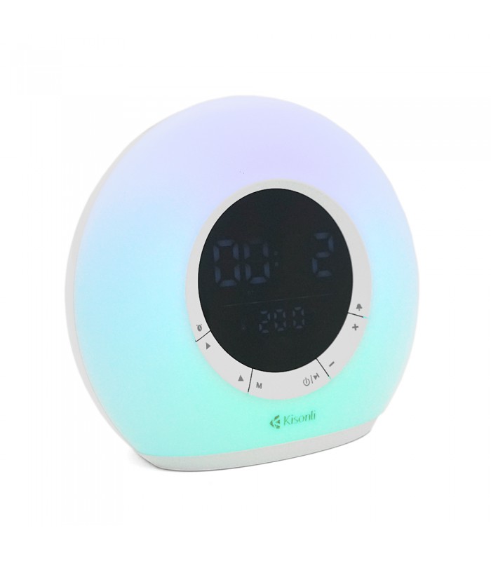 Колонка Kisonli Q6B Bluetooth 5.0, 1х5W, 3600mAh, USB/TF/FM/BT/LED/Clock/RGB Light, DC: 5V/1A, BOX, Silver, Q30 Новинка