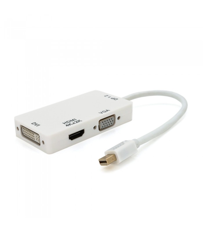 Конвертер mini Display Port (тато) на HDMI/VGA/DVI(мама) 30cm, White, 4K/2K, Пакет