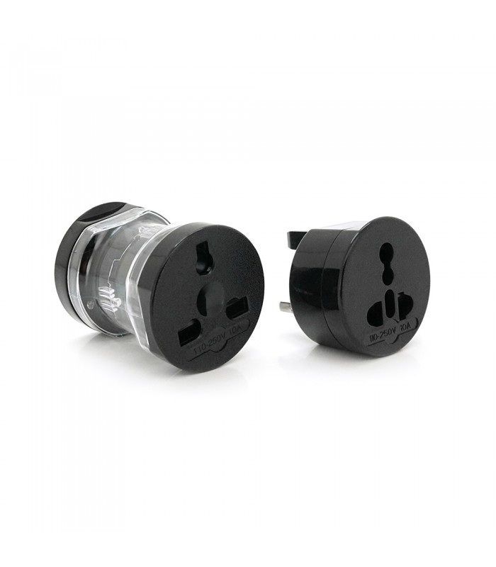 Цей перехідник є універсальним пристроєм, який дозволяє підключати американські електроприлади до європейських розеток. Він оснащений чотирма різними типами виделок, що робить його зручним та універсальним інструментом для використання у різних країнах.