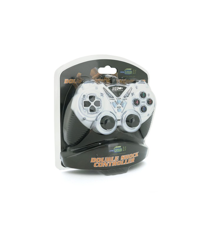 Геймпад проводной для ПК USB-908 USB 2.0 Double Shock (белый) - удобное устройство для игр на компьютере с двойным ударом, подключается по USB 2.0.