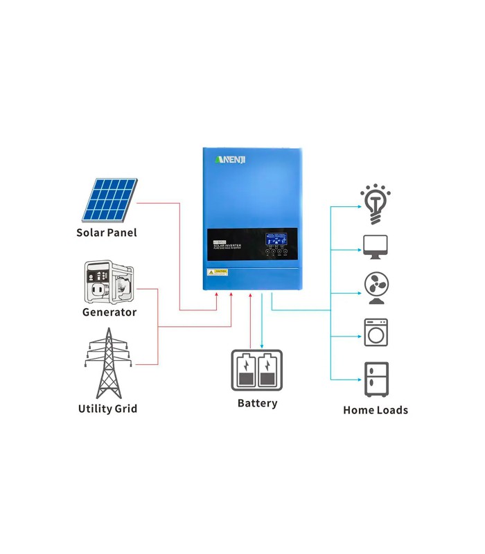 ANENJI 6,2KW - это многофункциональный гибридный инвертор, который обеспечивает надежное и эффективное решение для резервного электроснабжения вашего дома, офиса или других объектов.