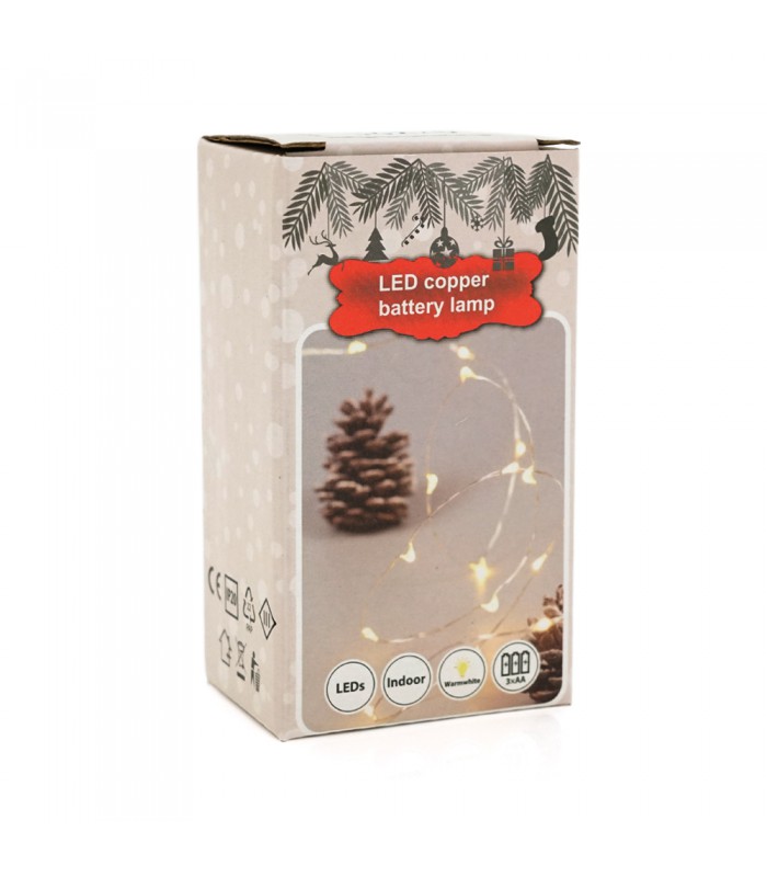 Гірлянди 50LED, 1 режим, 5 метрів, прозора ізоляція, живлення від USB + 2 * АА, White Hot, BOX
