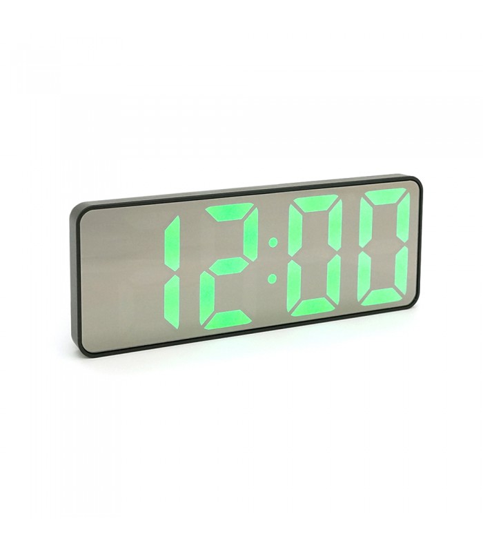 Електронний годинник VST-898 Дзеркальний дисплей, з датчиком температури та вологості, будильник, живлення від кабелю USB, Green