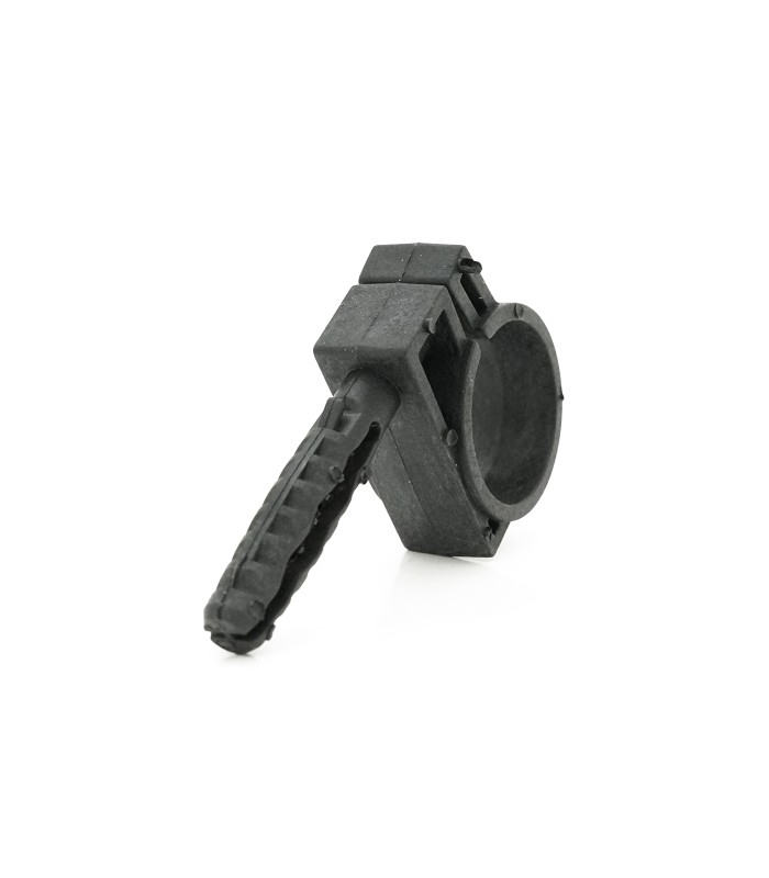 Дюбель, с распорными зубцами для надежного крепления в любом материале стены, потолка. После расклинивания дюбеля ударным шурупом (входит в комплект) замок-фиксатор обеспечивает долгое и качественное удержание труб в пластиковой обойме. Чтобы извлечь изделие необходимо выкрутить шуруп и полностью демонтировать элемент. Обойма является разъемной.