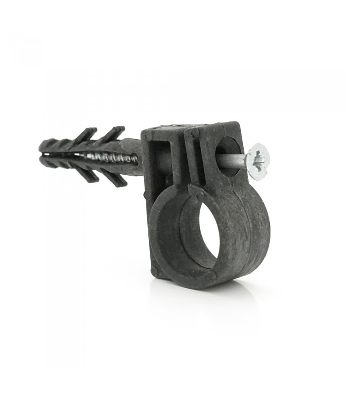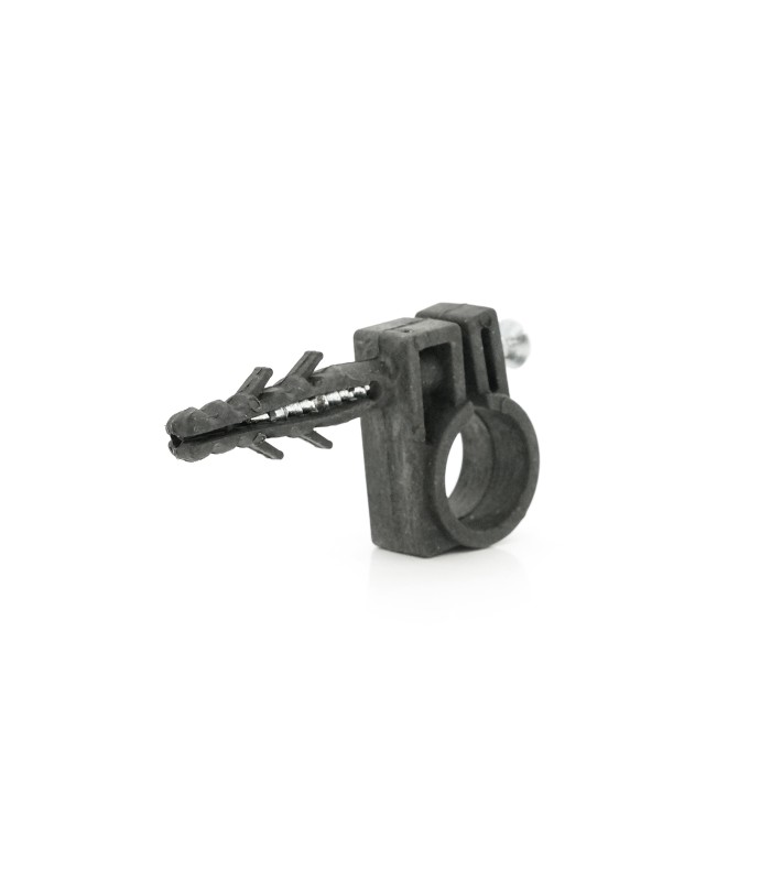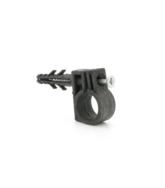 Дюбель, с распорными зубцами для надежного крепления в любом материале стены, потолка. После расклинивания дюбеля ударным шурупом (входит в комплект) замок-фиксатор обеспечивает долгое и качественное удержание труб в пластиковой обойме. Чтобы извлечь изделие необходимо выкрутить шуруп и полностью демонтировать элемент. Обойма является разъемной.