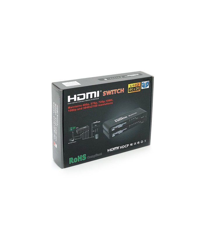 HDMI свич 3D 4k x 2k- предназначен для подключения до 5 устройств по HDMI к одному HDMI входу ТВ или монитора. Также есть функция переключения, которая может переключать несколько сигналов HDMI на устройство отображения высокой четкости, такое как HDTV, с помощью кнопки ручного управления или дистанционным пультом.