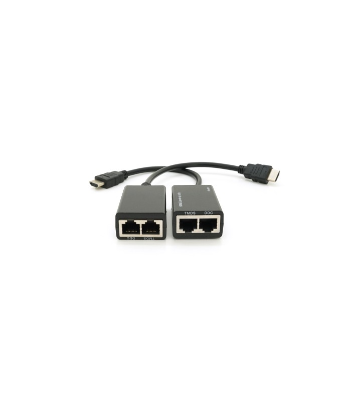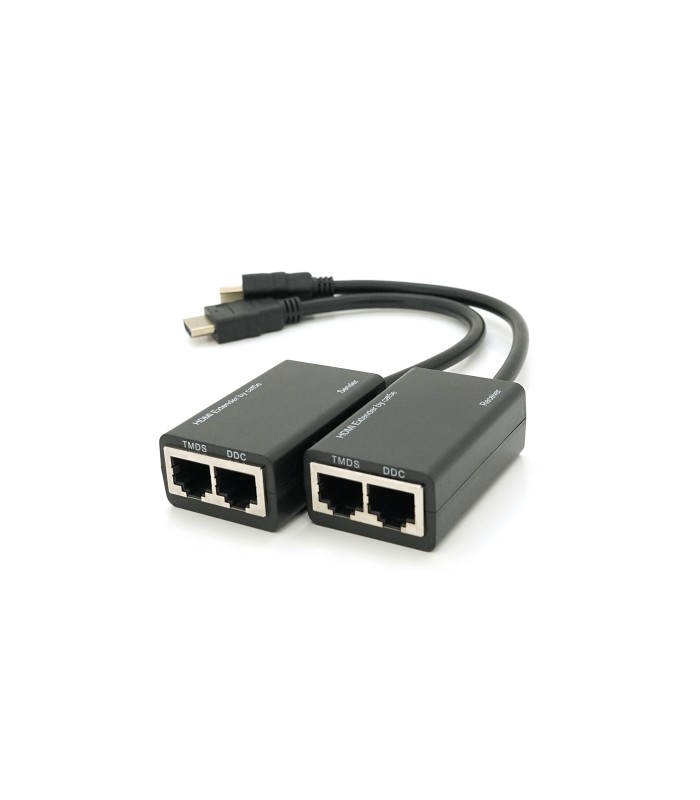HDMI удлинитель состоит из двух блоков. Для соединения блоков между собой нужно использовать экранированный кабель витая пара CAT-5e/6 прямого обжима (с обеих сторон одинаково) с экранированными коннекторами RJ45.