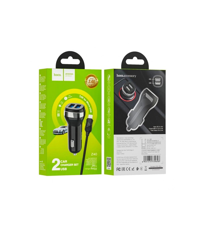 Автомобильное зарядное устройство HOCO Z40+ с кабелем Micro USB - это удобное и компактное устройство для зарядки устройств в автомобиле. Совместимо с устройствами, использующими Micro USB, и обеспечивает быструю зарядку благодаря выходному току 2.4A. Кабель имеет длину 1 метр, что обеспечивает удобство использования в салоне автомобиля.