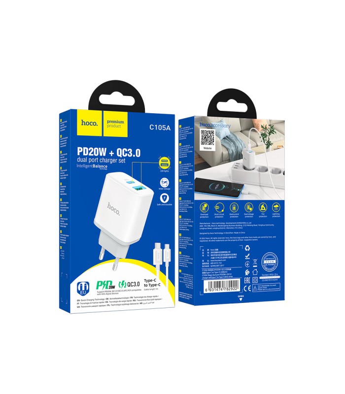Комплектное зарядное решение для быстрой и безопасной зарядки современных гаджетов. В набор входит компактный сетевой адаптер с двумя портами и качественный кабель Type-C длиной 1 метр.