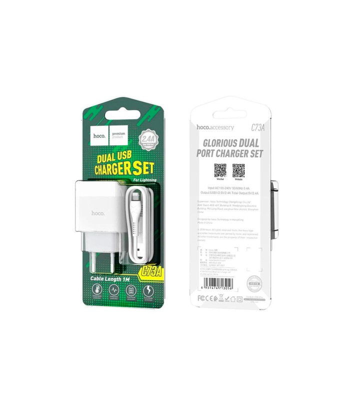 Этот набор включает в себя сетевое зарядное устройство с двумя портами USB и кабель Lightning. СЗУ обеспечивает выходной ток до 2.4A на каждом порту для быстрой зарядки устройств. Кабель Lightning длиной 1 метр также поддерживает ток до 2.4A и предназначен для зарядки и синхронизации совместимых устройств с разъемом Lightning. Упаковка в блистере обеспечивает удобство при транспортировке и хранении.