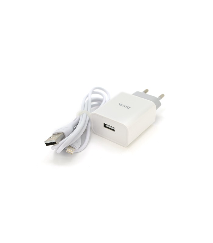 Описание набора сетевого зарядного устройства (СЗУ) HOCO C81A с кабелем Lighting: